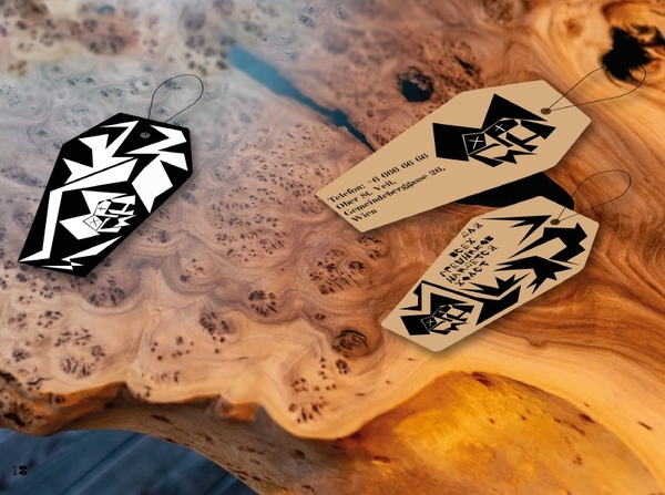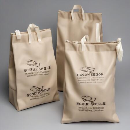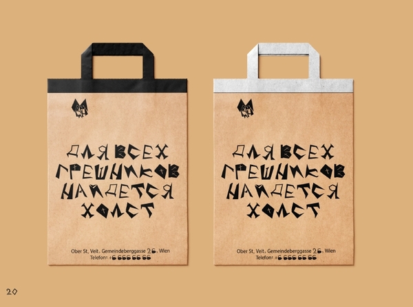 Слева пакеты, сделанные мной, справа сгенерированные. Промт: beige bags for the Egon Schiele crematorium morgue «Blink» the packages indicate the name, phone number, opening hours and a large logo