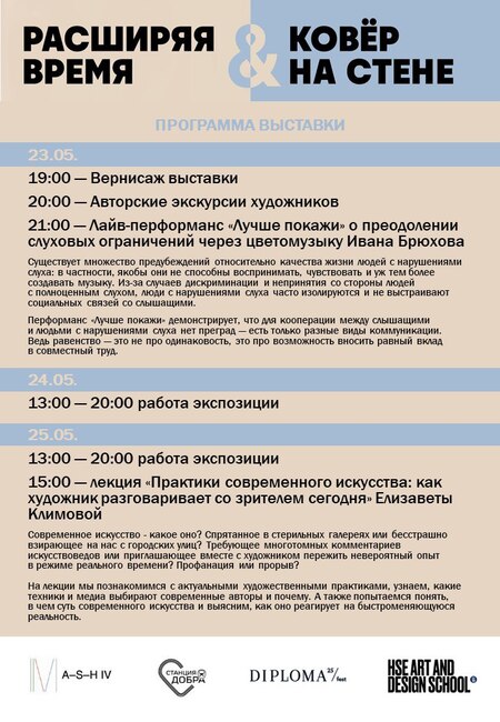 - Выставка проходит в рамках фестивалей Diploma25 (НИУ ВШЭ) и ART SPACE HOOKING 25