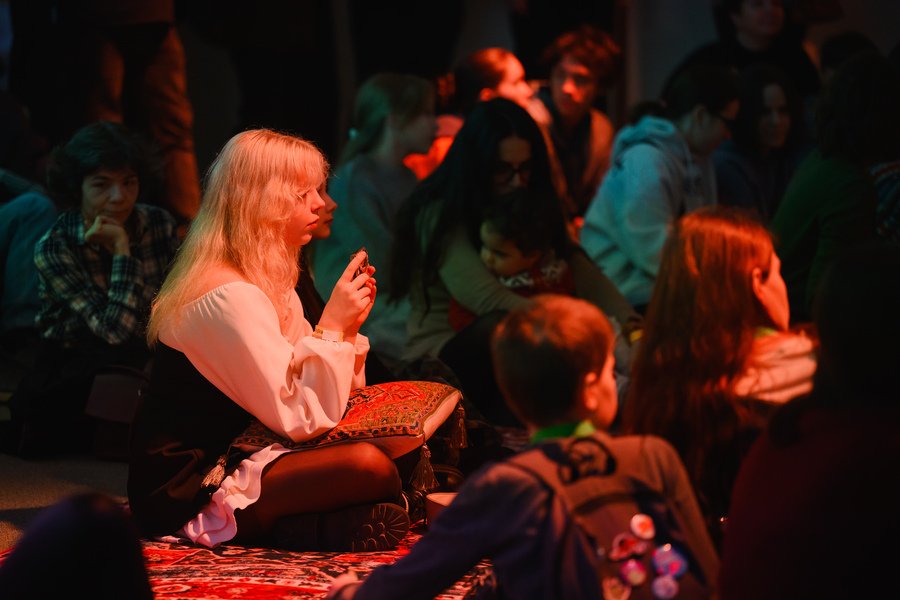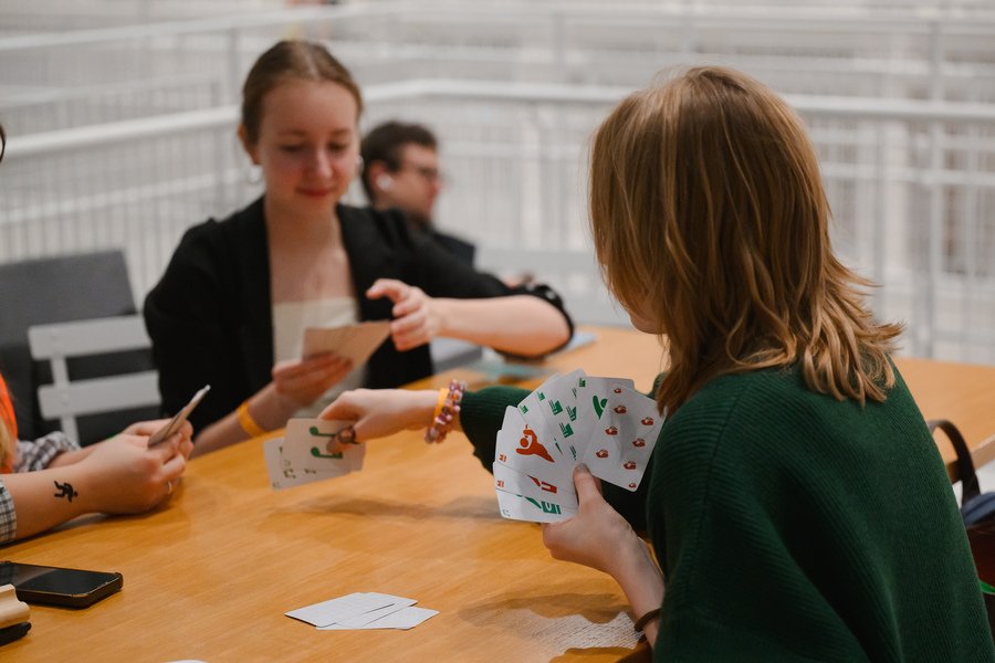 На одной из платформ организатор второго Фестиваля имени Д. Фофанова Ульяна Веровенко проводила сеансы игр в мафию и уно с кастомизированными колодами карт.