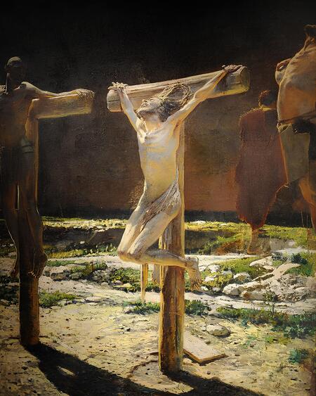Н. Н. Ге, «Распятие» // Здзислав Бексиньский «Без названия»