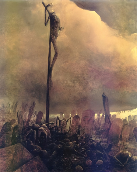 Целью этого визуального исследования станет выявление визуальных и художественных сходств работ художников, творивших в разные эпохи. Нам предстоит найти как аналогии коцепций и сюжетов, так и различия приемов на полотнах Ге и Бексиньского. Свою точку зрения мы подтвердим результатами анализа визуальных языков и стилей изображения мрака и страданий на картинах двух разных живописцев.