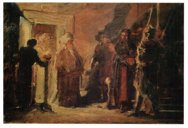 Здзислав Бексиньский, «Без названия» // Христос перед Анной. Н. Н. Ге. 1868 г. Эскиз.