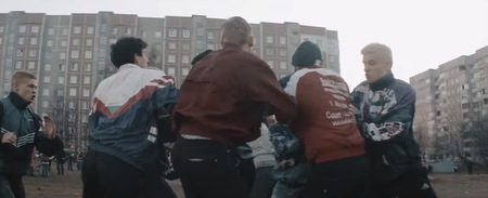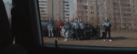 Тимати и его команда, напротив, почти нарочито контрастируют с панельным фоном. Рэперы появляются в ярких брендовых образах, с дорогими украшениями и на спортивном автомобиле, но поют об обыденном — о любви. Это сильно выбивается из аскетичных и спокойных жилых кварталов, где живёт совсем другой социальный слой. Но именно эта визуальная антитеза и делает кадр более выразительным: роскошь, помещённая в обыденность.