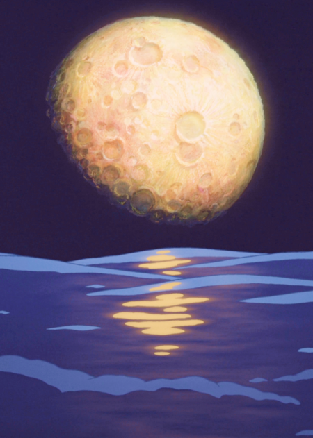 Итак, экспозиция. Первые кадры анимационного фильма сразу подсказывают предстоящие ощущения — нас ожидает волшебная сказка с хорошим финалом. Размеренно перетекают волны, мерцают лунные блики, морские глубины светлы и прозрачны, а магия загадочного мужчины в полосатом пиджаке кажется продуманным безвредным ритуалом.