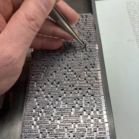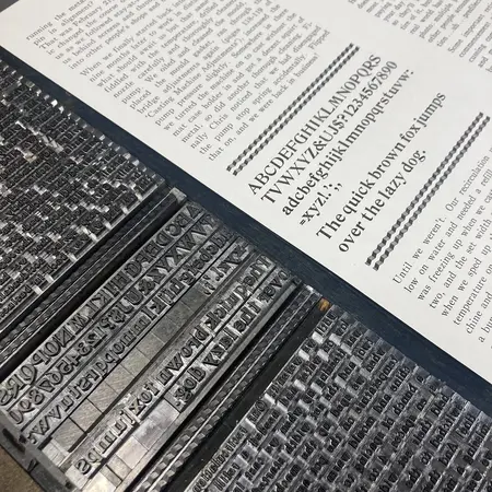 Металлические литеры, а позднее фотонабор — система. Каждая строка фиксируется в верстатке, каждое слово — набором блоков. Инструмент «управляет» дизайнером: линейка набора, верстатка, шкалы кеглей и пробельный материал. Всё строится по определённой иерархии (распределение кегля, увеличение или уменьшение интерлиньяжа). Процесс ручного набора оставляет мало места импровизации.