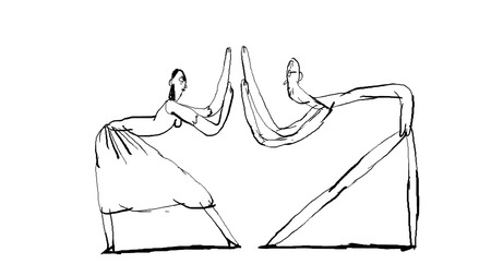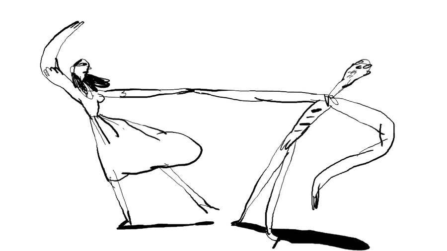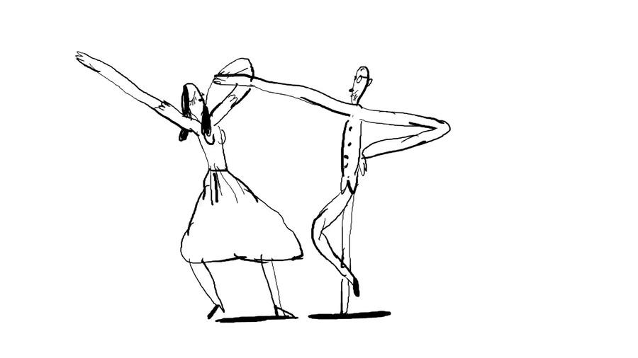 В кадре все еще присутствуют только два персонажа, но Макларен создает гипнотизирующую оптическую иллюзию, экспонируя одни и те же кадры для финального результата. Изображения танцоров накладываются не только на них самих, но на их партнеров, объединяя двоих в одно целое.