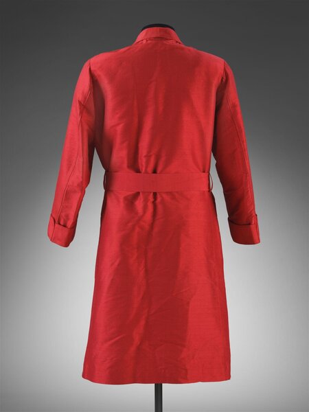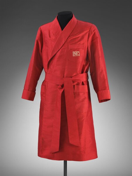 Халат из красного шелка с карманом, украшенным белой вышивкой с монограммой «NC», принадлежавший актеру, режиссеру и драматургу Ноэлю Кауарду (1899–1973). Англия, ок. 1930-1950. V& A музей
