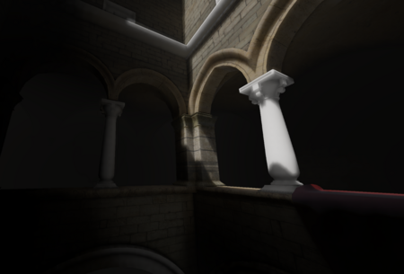 Пример недостатка Screen Space эффекта при повороте камеры (R7Engine).
