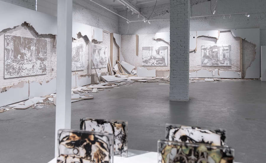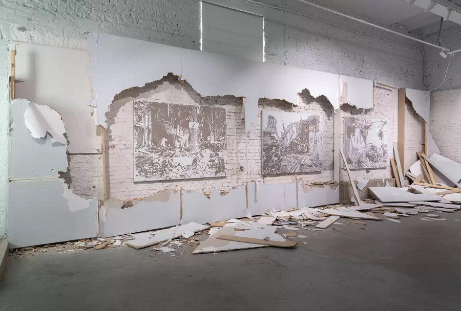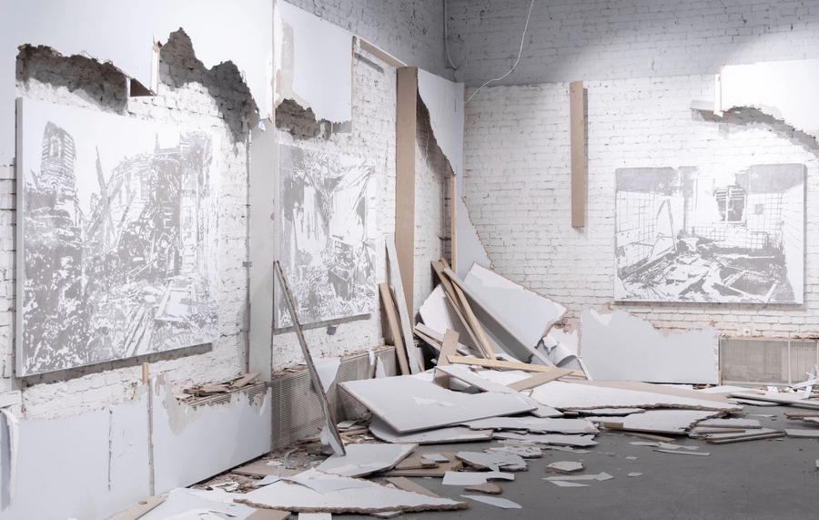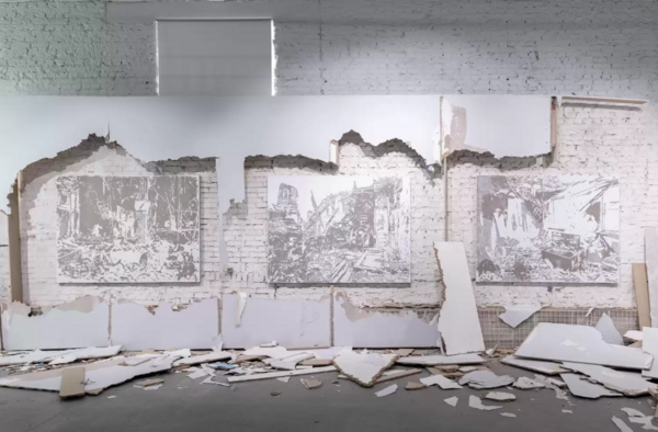 В проекте важную роль играет тема репрезентации с помощью живописи и способность искать обыденное, повседневное, понятное в увиденном. Здесь искусство становится формой критики, способом вырвать происходящий момент из понятия «привычное» и показать весь его ужас. Усложняет высказывание разрушение белые стен галереи, художник превращает проект в тотальную инсталляцию61.