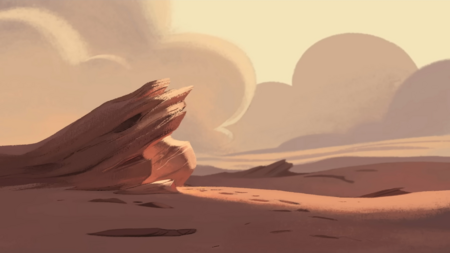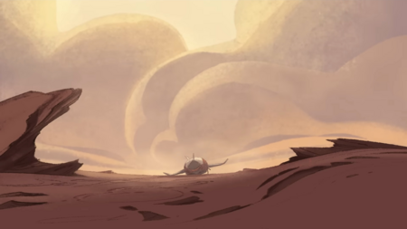 Пустынная планета, на которой оказывается действие, приобретает более мистический вид с наступлением ночи.