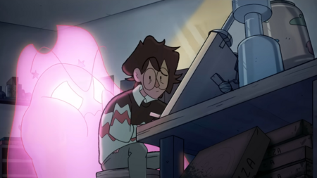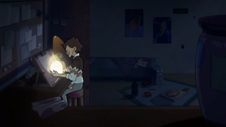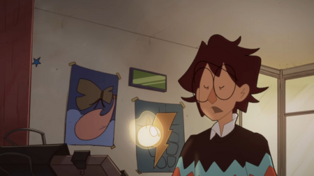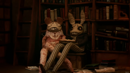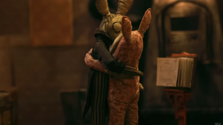 Протагонист немного странный по дизайну, но определенно обладает своим шармом. Зритель проникается устремлённостью главного героя в создании нового друга: подборе ткани, запекании глиняной маски, набивке тушки ватой.