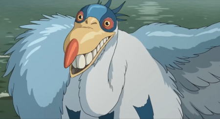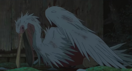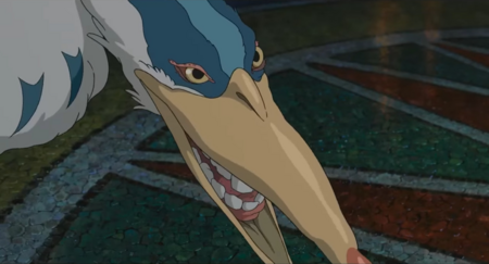 Цапля — один из самых цепляющих образов фильма. Она инородно смотрится в более приземлённом зачине истории. Именно благодаря ей Махито находит Башню. В то же время птица является неким трикстером, проводником, который хочет запутать. Внутри неё прячется некое существо, Бёрдман, объясняя странный вид животного. Как и многое «потустороннее» в этой истории, оно двояко.