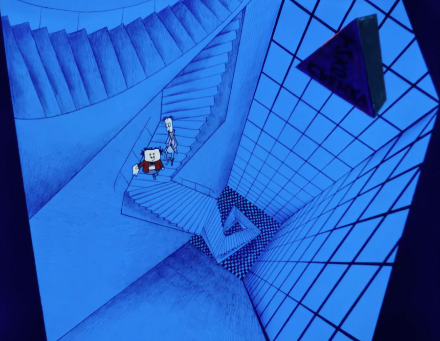 Сама студия здесь представлена как нечто «свыше», большое, странное и хаотичное пространство (вдохновлённое мирами М. С. Эшера), перед которым все должны стоять по струнке. Такие конструкции сосуществуют с остальным гипертрофированным миром.