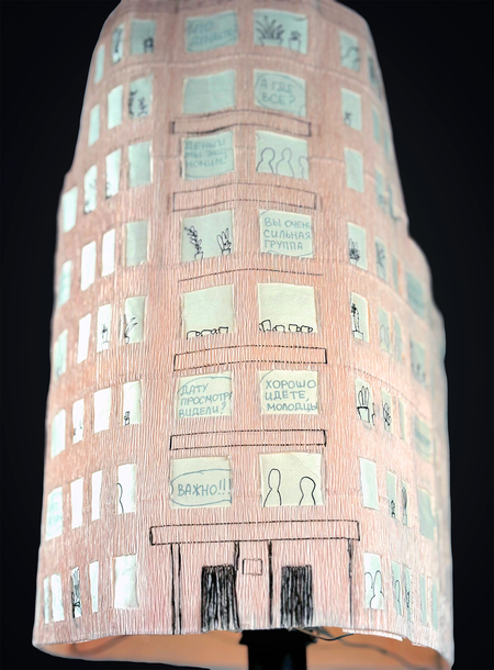 Основная идея лампы в том, что когда она включается, ее обладателю становятся ярко видны слова и выражения, которые говорят кураторы