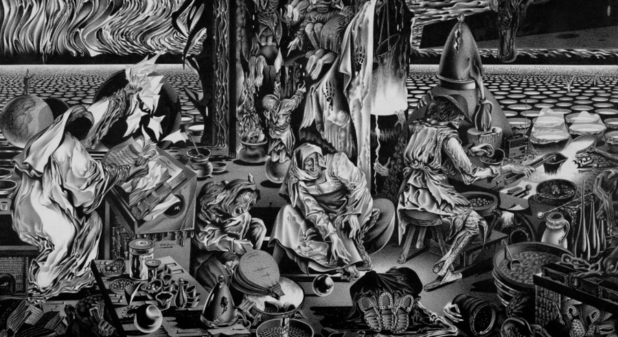 Подготовка и сам поход экспедиции сопровождаются картиной «Антибрейгель», которая является адаптацией известной гравюры Питера Брейгеля-старшего «Алхимик». В своей работе Фоменко гипертрофирует фанатизм и одержимость алхимиков, используя математические понятия: математическая бесконечность (уходящие за горизонт чаши с расплавленным металлом), аналитическая функция (облака на небе), топологические гомеоморфизм и гомотопия (деформаций человеческого тела).