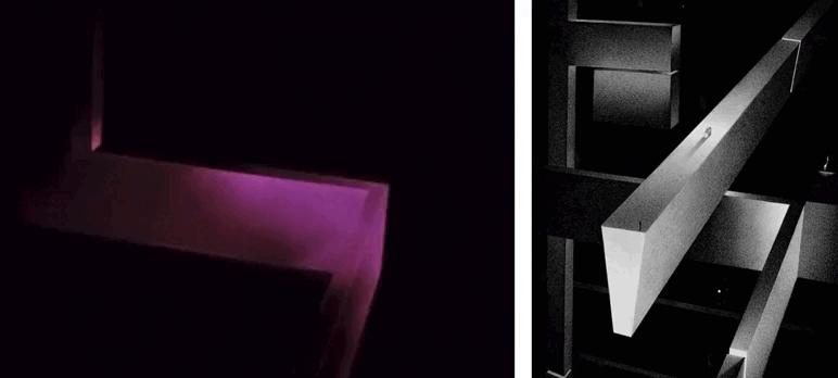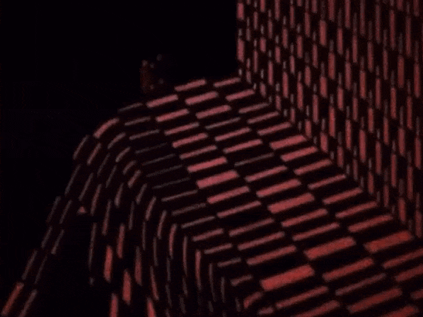 Оказавшись вместе с путниками внутри корабля, мы видим совсем другой мир: в контрастную черно-желтую картинку добавляются цвета; интерьер становится еще более геометричным, чем экстерьер.