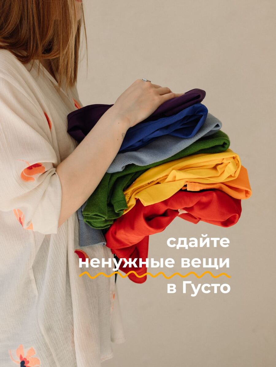 Ежемесячно мы в «Густо» принимаем и сортируем более 15 тонн вещей — половину вещей передаём на благотворительность, часть вещей на переработку, а самые красивые и трендовые вещи продаём в наших секонд-хендах чтобы покрыть расходы на логистику и сортировку.