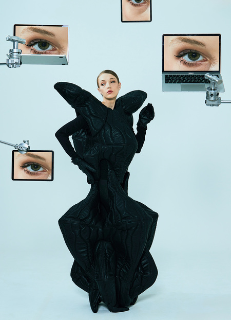 Слева: Варвара Полторакина, 3 курс. SYNTHETIC CHOICES. Справа: Далия Зайнутдинова, 2 курс. posthuman. Арт-дирекшн: Амалия Гайсина, Богдан Лебедев. Фотограф: Павел Каменщиков