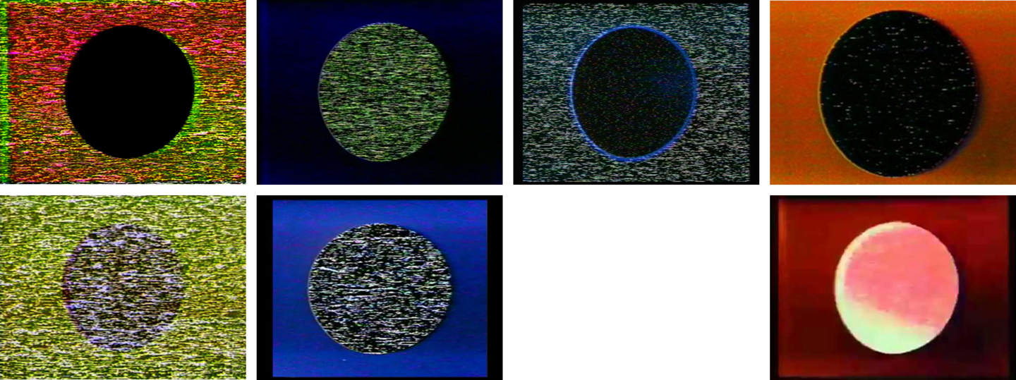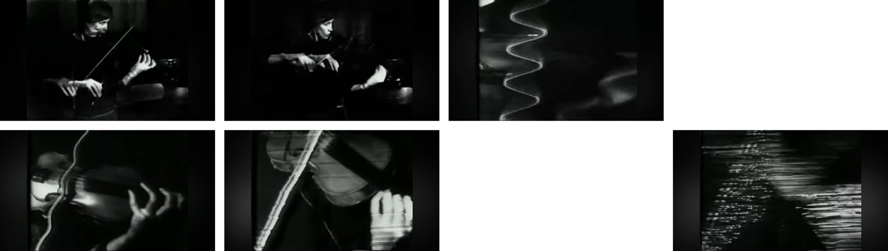 Ш. и В. Васюлка, кадры видео-арта «Noisefields», 1974 // Ш. Васюлка, кадры видео-арта «Violin Power», 1978 // В. Васюлка, кадры видео-арта «The Matter», 1974.