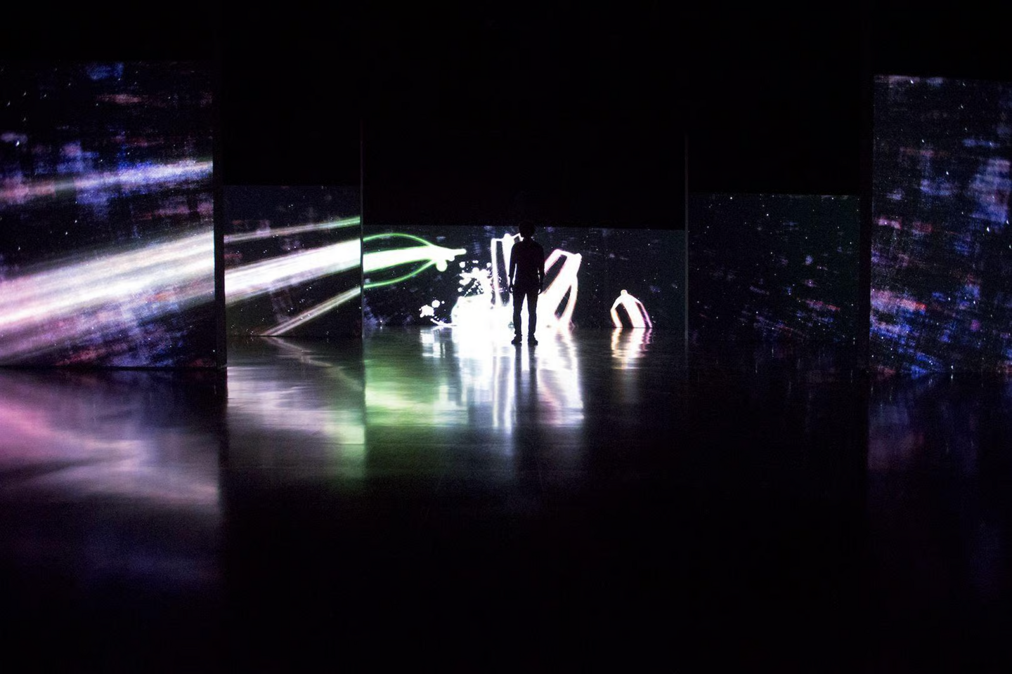 TeamLab, фотодокументация инсталляции «Crows are Chased and the Chasing Crows are Destined to be Chased as well, Transcending Sрасе», 2017.