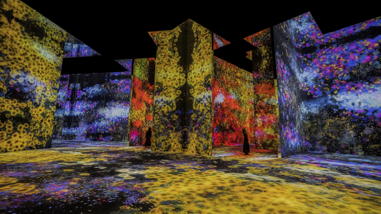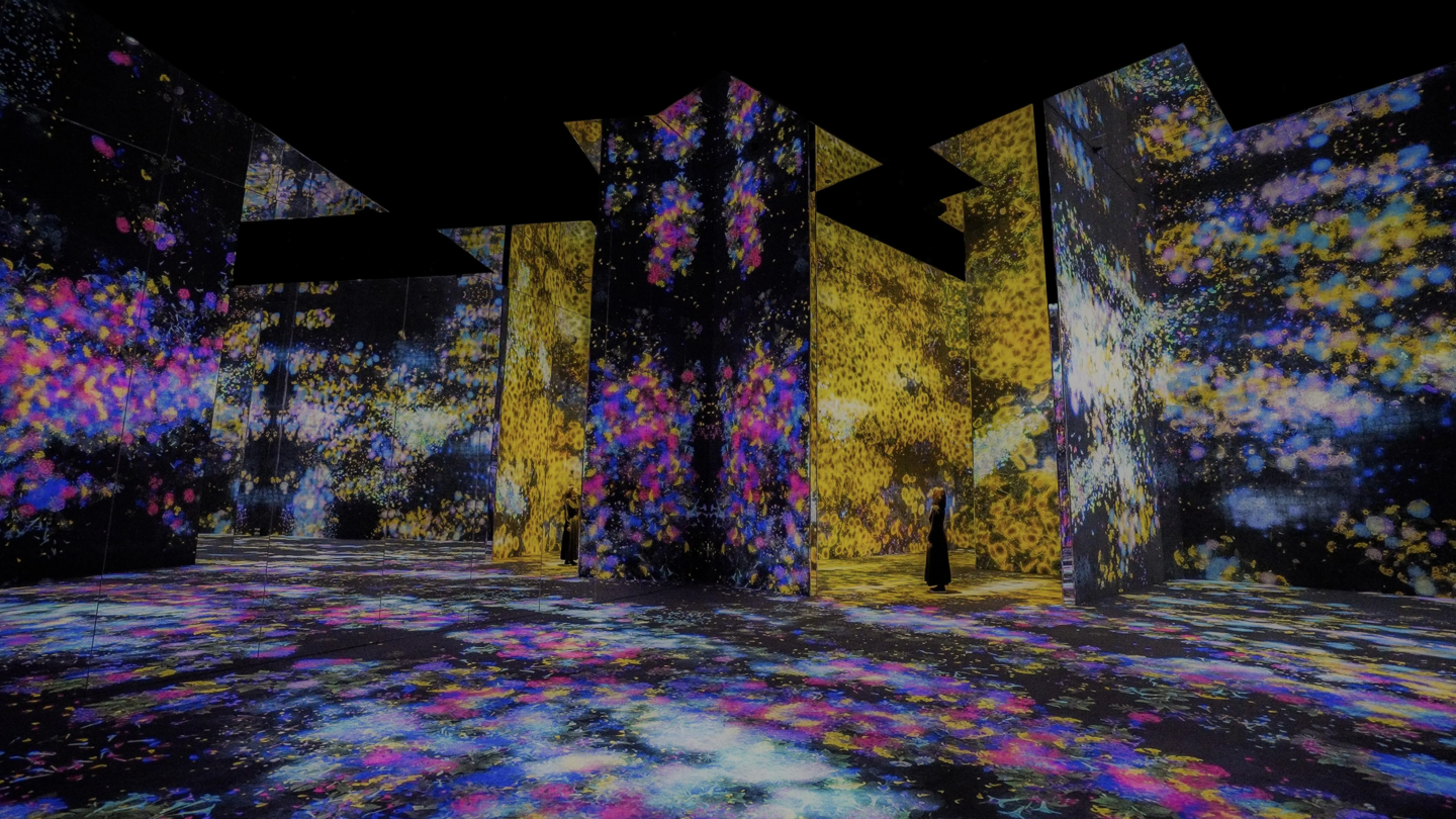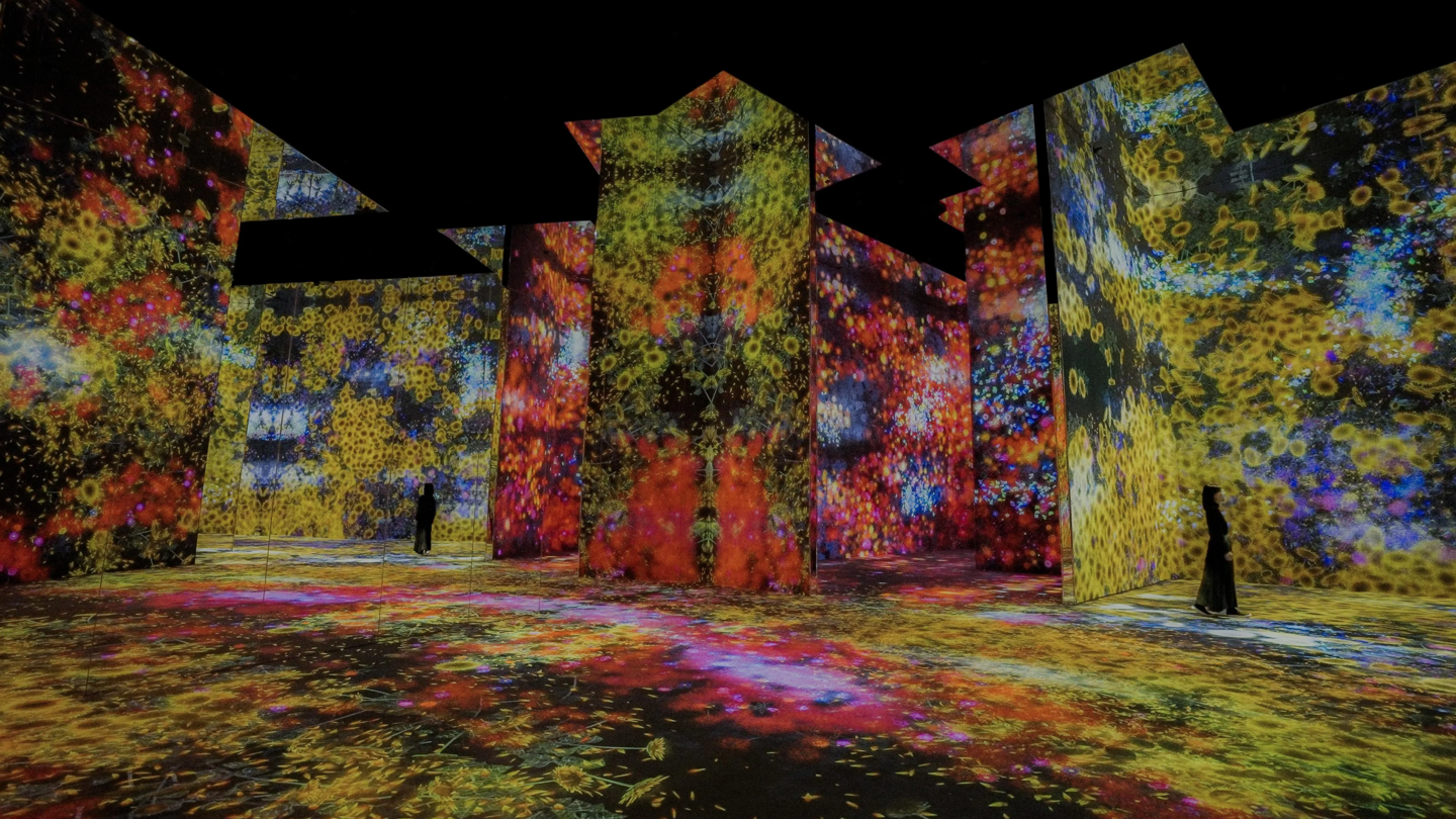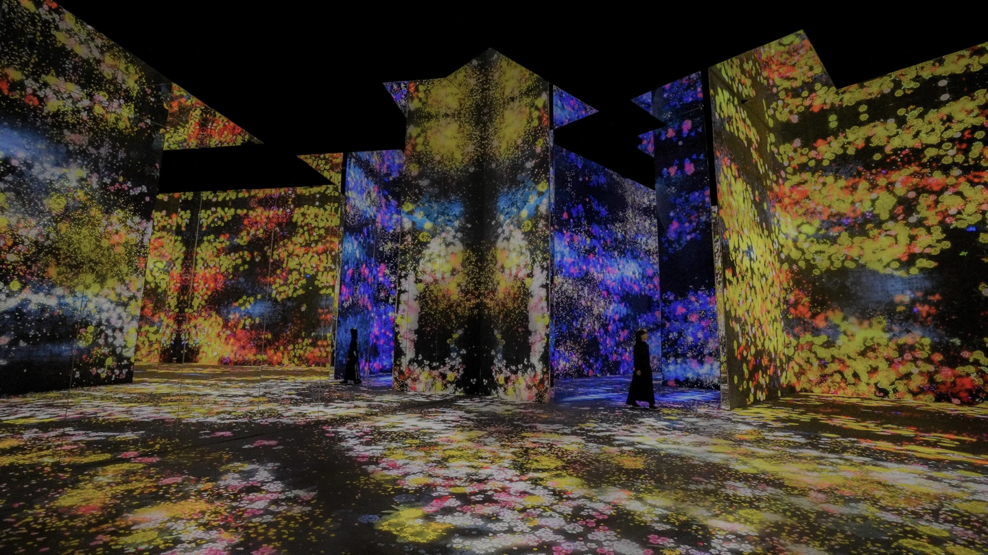 TeamLab, фотодокументация инсталляции «Flowers and People — Cannot be Controlled but Live Together», 2014.