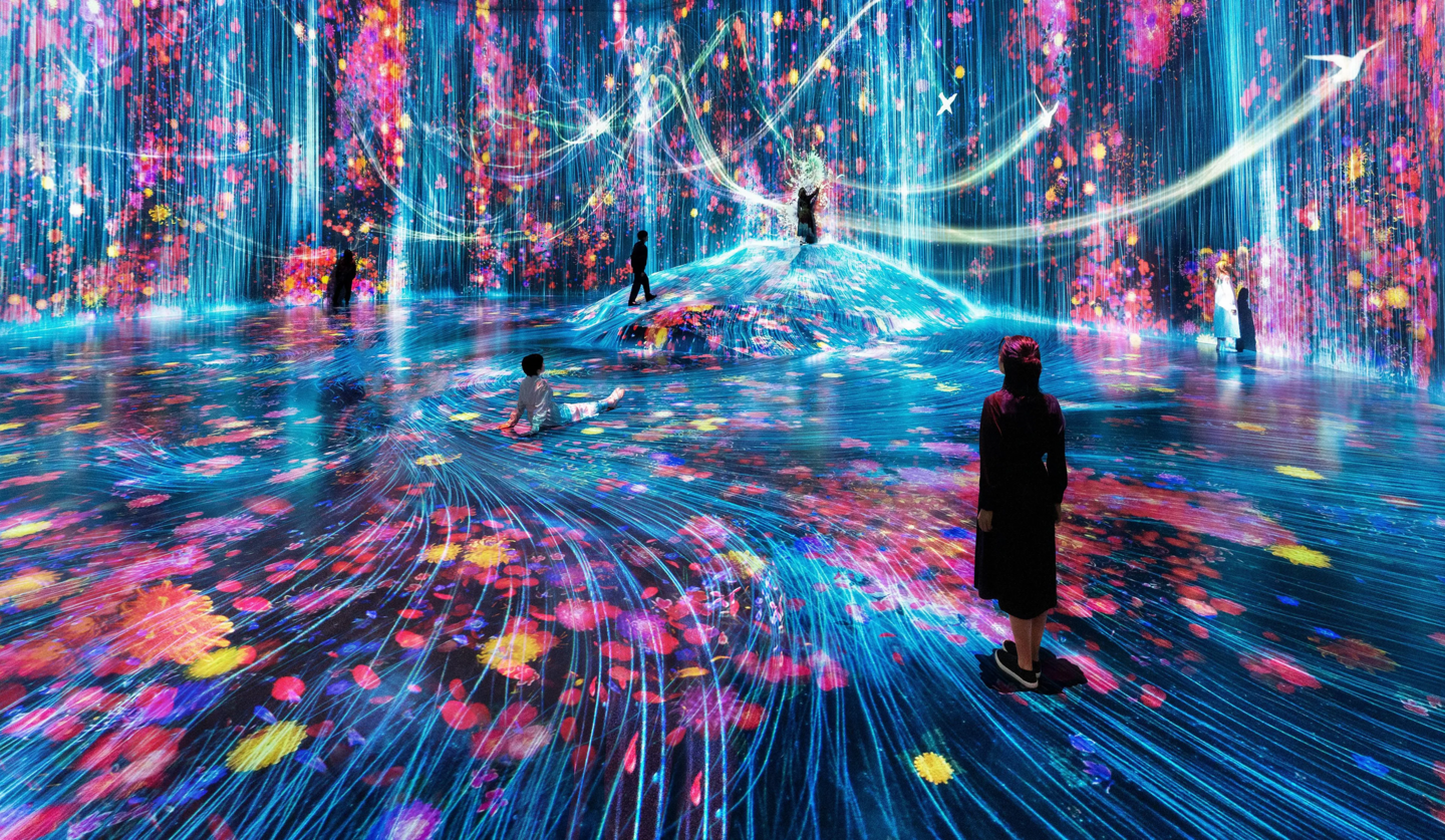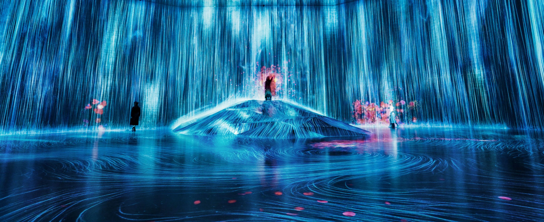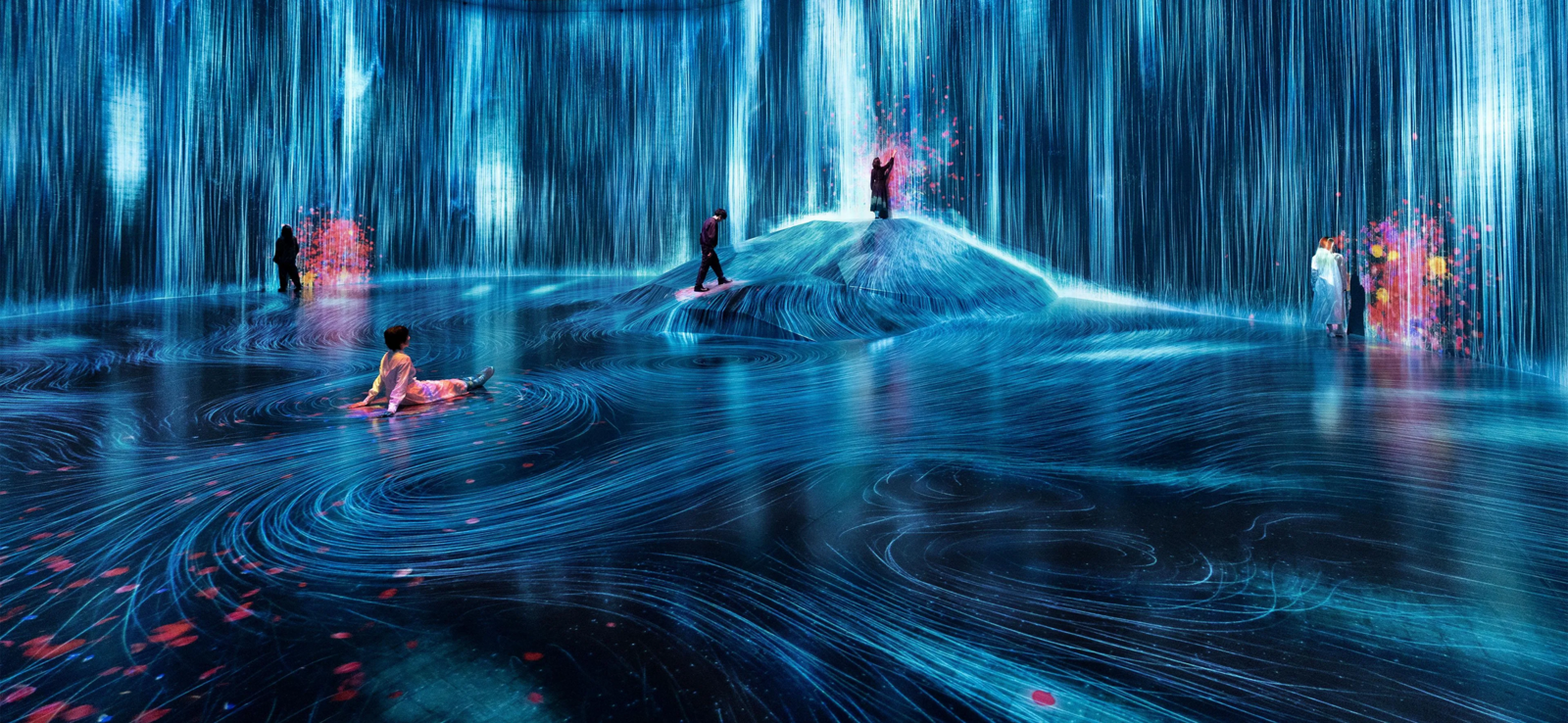 TeamLab, фотодокументация инсталляции «Universe of Water Particles on a Rock where People Gather», 2013.