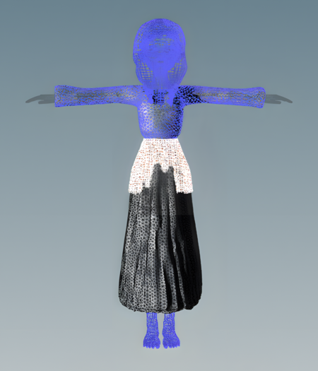 Перед началом работы стоит учесть седующее [9]: — В получении предсказуемого результата значимую роль играют размеры модели — они должны быть указаны в метрах. Размерные юниты могут быть также настроены в файле Houdini, и при желании пользователь может их настроить перед началом работы над симуляцией, чтобы все работало правильно. — В процессе подготовки геометрии важно убедиться в отсутствии пересечения геометрии ткани с геометрией тела или других коллайдеров. — Модель ткани может состоять как из прямоугольной, так и из треугольной сетки, — при использовании последней необходимо перенести uv-аттрибуты, чтобы контролировать то, в каких направлениях будет деформирована ткань. В квадратной сетке это необязательно, так как направления деформации будут определены направлением эджей. Сетка также может быть и смешанной, однако в этом случае также необходимо предоставить uv-аттрибуты. — Если симуляция сопровождается персонажной анимацией, топология анимированной модели должна сохраняться постоянной (без изменений количества точек, примитивов, вертексов).