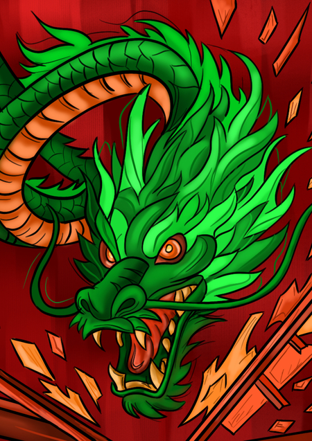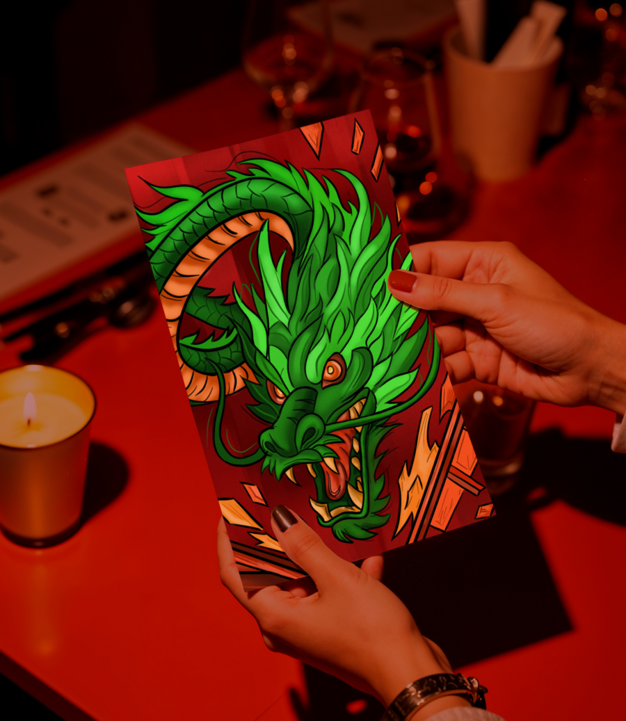 В данном модуле я работала над иллюстрациями для китайского ресторана. В качестве главного символа, я решила взять дракона, который в китайской мифологии является олицетворением мира на земле.
