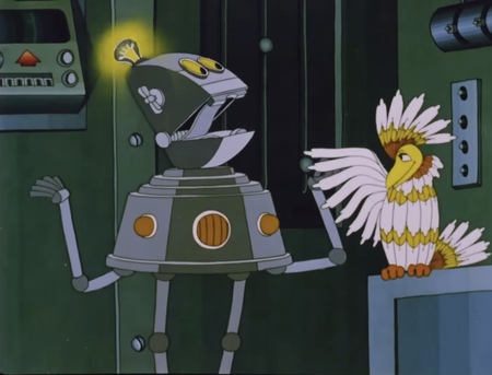 Весь мультфильм — это наука, фантастика, краски и динамика. Такое разнообразие образов встречается редко.