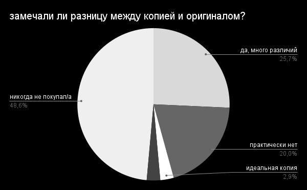 На основе нашего исследования можно заключить, что даже обычный потребитель способен отличить подделку от оригинала при внимательном рассмотрении. Тем не менее, отсутствие понимания изначального качества продукции может повлиять на результаты голосования.