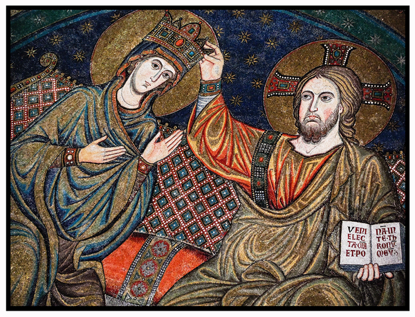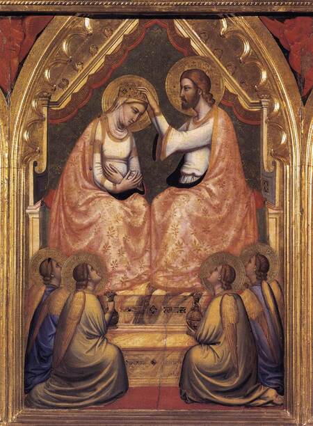 Слева: Якопо Торрити. Коронование Богоматери. 1296. Папская базилика Санта-Мария-Маджоре, Рим. Справа: Джотто. Полиптих Барончелли, Коронование Девы Марии. 1334 г. Церковь Санта Кроче, Флоренция.