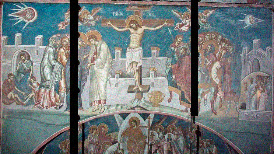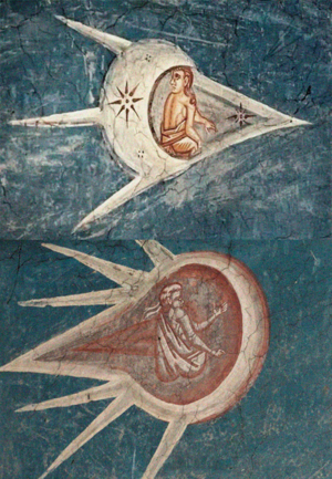 В 60-х монастырь Высокие Дечаны в Косово прославился на весь мир своей фреской с сюжетом распятия Христа — всех внезапно привлекли две фигуры в противоположных углах фрески, которые представляют собой традиционные персонификации Солнца и Луны. Полуфигуры людей внутри дисков — является устоявшимся каноном в византийском и средневековом христианском искусстве. Их присутствие символизирует космический масштаб и значимость события Распятия, подчеркивая, что весь мир, включая небесные светила, стал свидетелем этого ключевого момента.