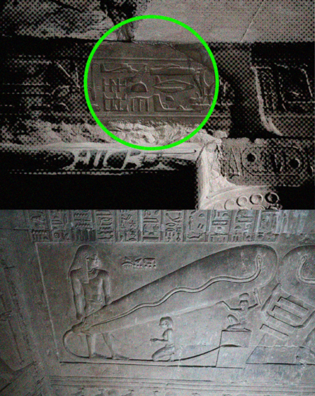 Про взаимодействия Древних Египтян с внеземными разумами давно не секрет! Пирамиды — это не гробницы, а высокотехнологичные энергетические станции или навигационные маяки. Чего только стоят символы летательных апппаратов в Храме Сети I в Абидосе (при чем тут эррозия и палимпсест?) или изображения ламп накаливания в храме Хатхор в Дендере (это точно не змея, возникающая из лотоса — символ изобилия и разлива Нила).