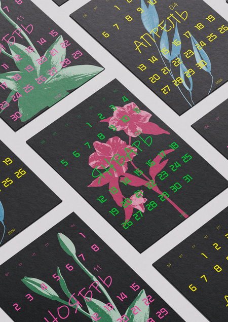 Каждый месяц воспринимается как отдельный лист гербария, на котором запечатлены различные уникальные цветы.