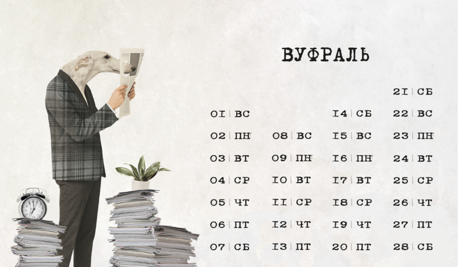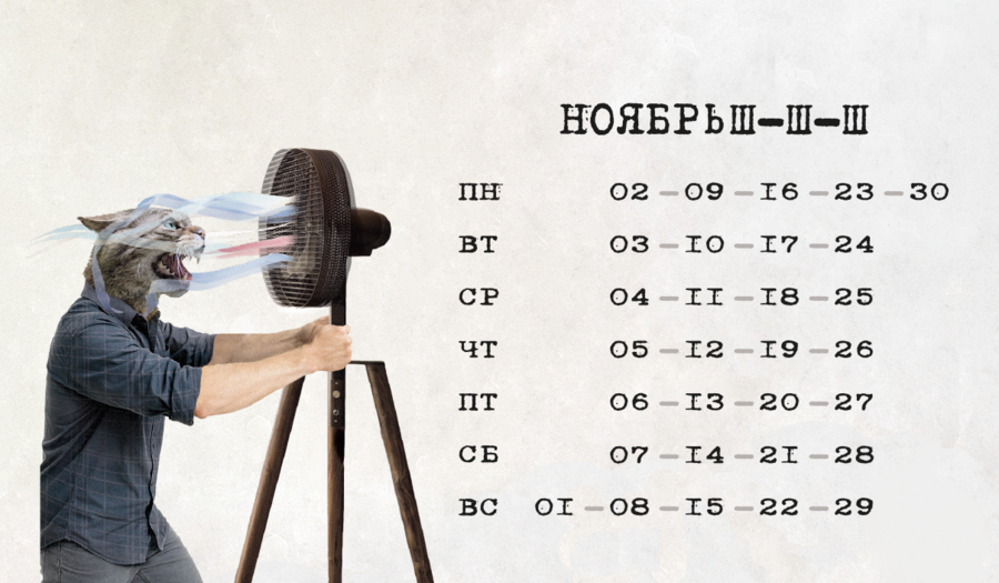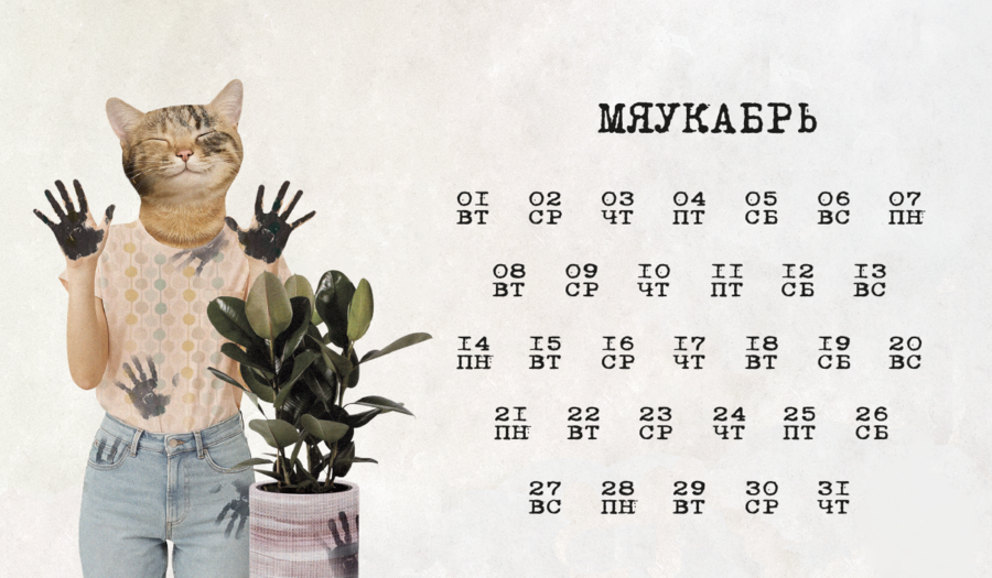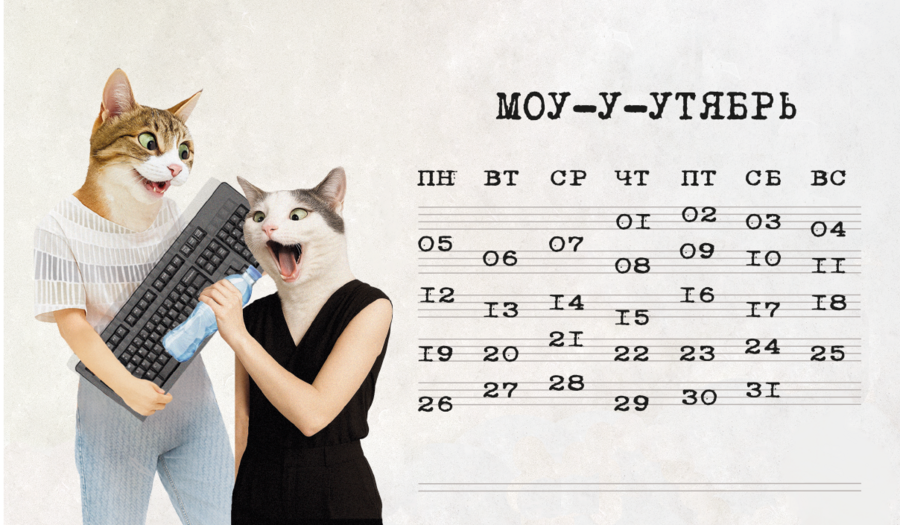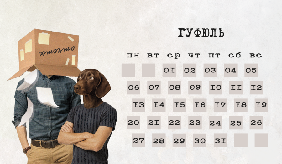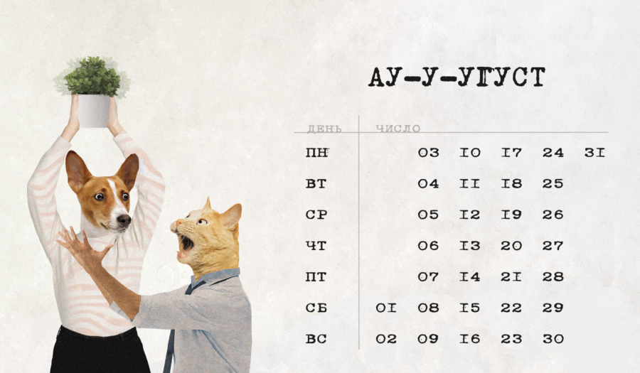 Названия месяцев — это игра слов. К привычным нам словам добавлены звуки, которые издают собаки и кошки