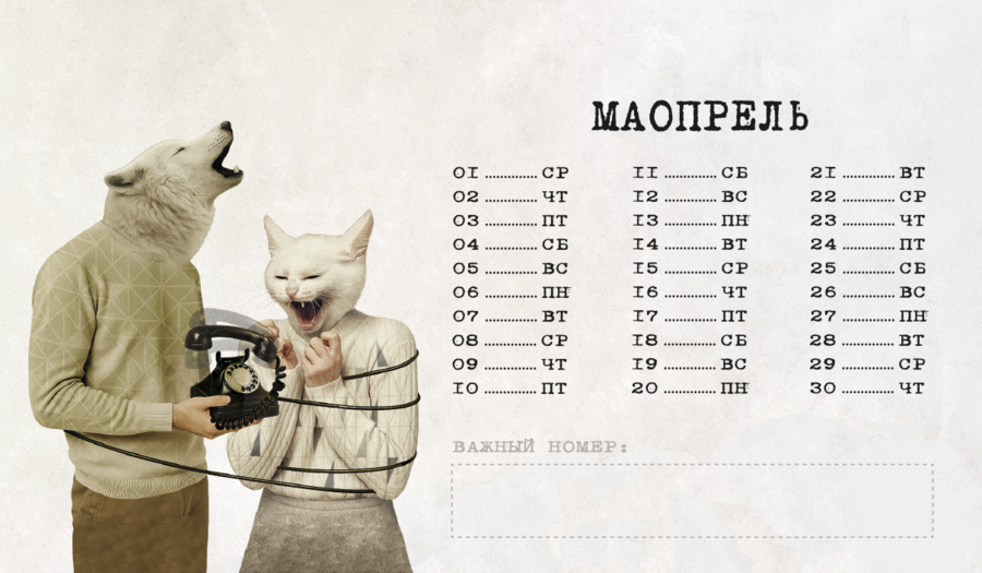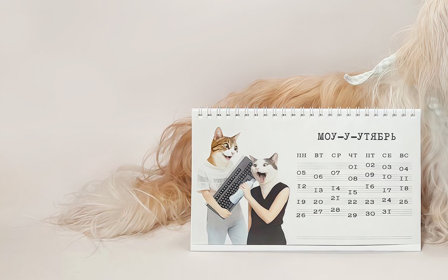 Настольный формат позволяет без проблем разместить календарь на рабочем столе, а забавные иллюстрации делают день веселее