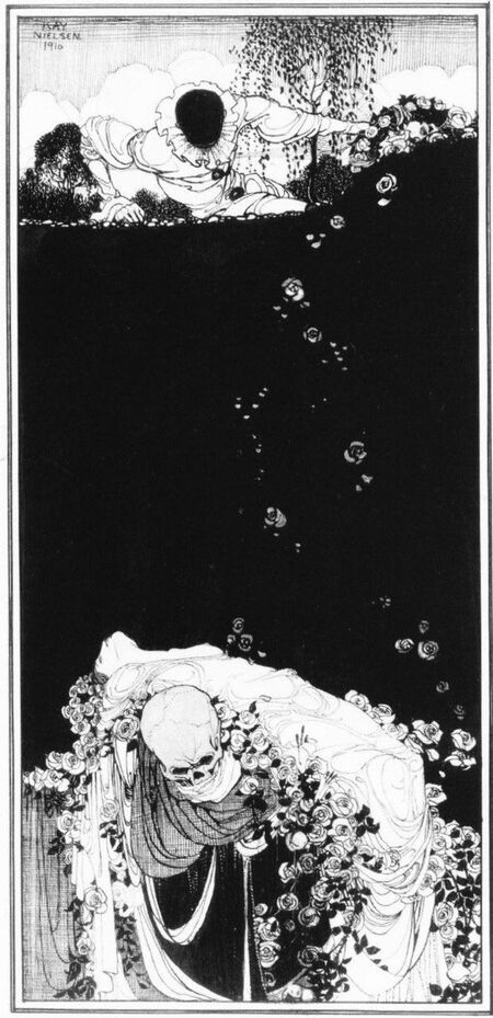 Кей Нильсен –– датский иллюстратор, родился в Копенгагене в 1886 году. Он учился в Париже, потом переехал в Англию. Его ставят в один ряд с Артуром Рэкхемом, Чарльзом Робинсоном, Эдмундом Дюлаком. Их стили действительно похожи, и все же совершенно разные. Иллюстрации всех этих мастеров наполнены огромным количеством деталей, все яркие с четкими линиями, внутри которых акварельная заливка. Но у Нильсена свой неповторимый почерк.