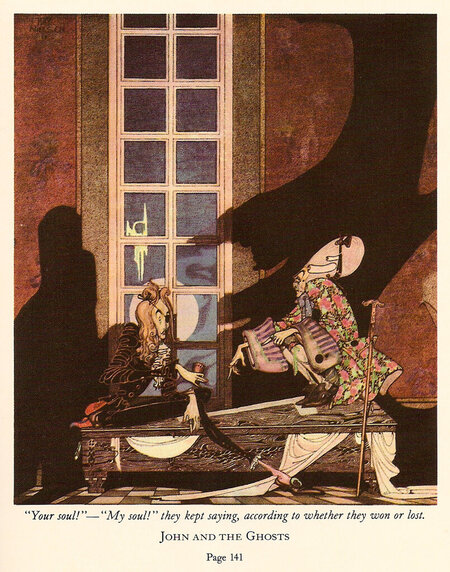 Для начала, перспектива в его работах работает иначе чем у большинства иллюстраторы. Он ставит всех будто на сцену, как актеров. Возможно, на это повлияла театральная семья художника.
