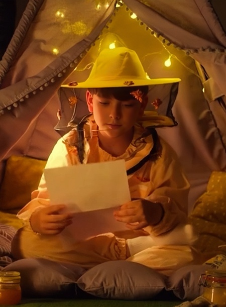 В качестве материалов мы использовали разные виды меда, детский шалаш, интерьерные предметы и ряд светового оборудования.
