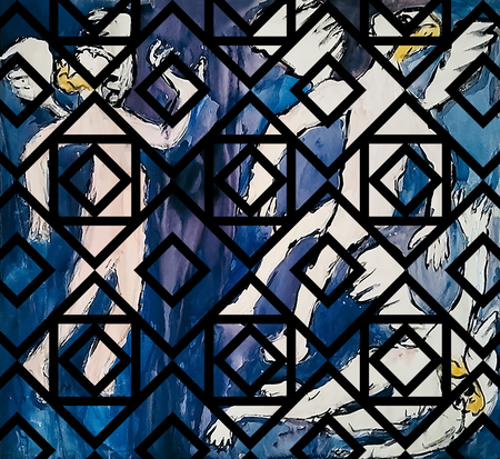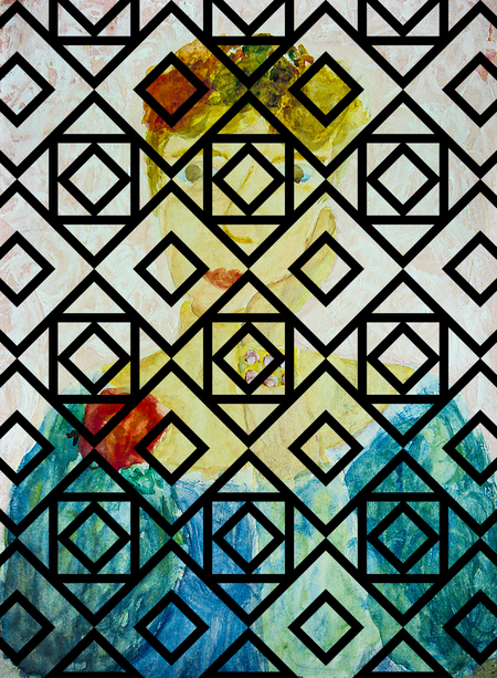 Алеша Дмитриев, 10 лет. Юстиниан со свитой. По мотивам византийской мозаики. 1990. Гуашь