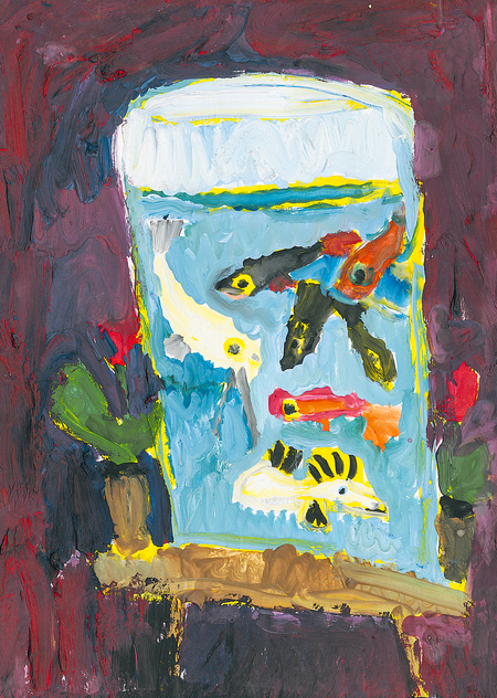 Слева: Около картины А. Матисса «Рыбки» Справа: Филипп Трефан, 6 лет. Рыбки. 2005. Гуашь