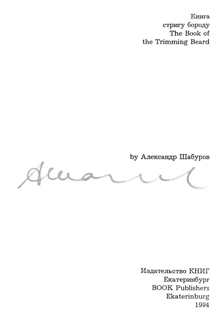 As previously reported, in the 1990s the artist Shabourov was able to work as an art editor of 20 newspapers and magazines. And that most of them were just a few numbers. You can list them all here for memory: «20 copéeks», «CLIP (Culture, literature, art, politics), „Eleantarno, Watson!“, „The Night Quarter“, „Trust“, „Mativity Detective“, „Pucitina“, „Mansi-maa“, „Republic“, „Love and Business“, „Study“, „Major Prospect“, „Industry“, „Industry Alliance“, „New Chronicle“, „The People’s Chosen“, „The Transformation of Ural“, „Ural“, „Labyrent-Excenter“, „The Black Journal“, „Eternal Memory“. Some of them are still coming out, and every Shabour has been trying to come up with some kind of interesting project. But Shabourov liked most of all the newspaper „The Main Prospection“, where he had a copy machine on which to print all kinds of samazat books. Shabourov once cut his beard and, like an ancient Chineseman, noticed how a bizarre pattern fell into the sink with hair-cuts, then repeated the same thing over the copy machine and threw the resulting notes into the book „Striking Beard Over Xerox“.