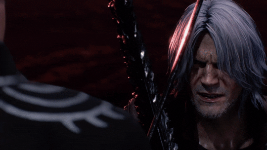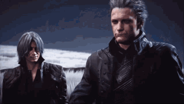 Слева и Справа персонажи Данте и Вергилий, фрагменты из игры «Дэвил Мэй Край V»