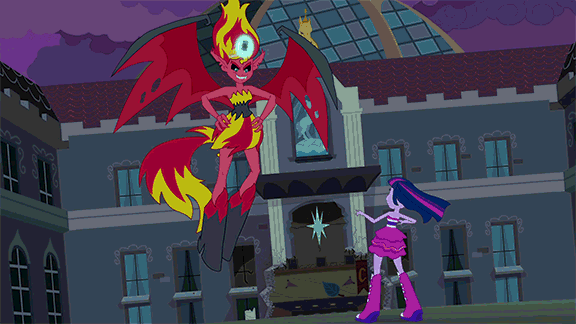 Слева и Справа персонаж Сансет Шиммер, фрагменты из полнометражного мультфильма «Мой Маленький Пони: Девочки Из Эквестрии»