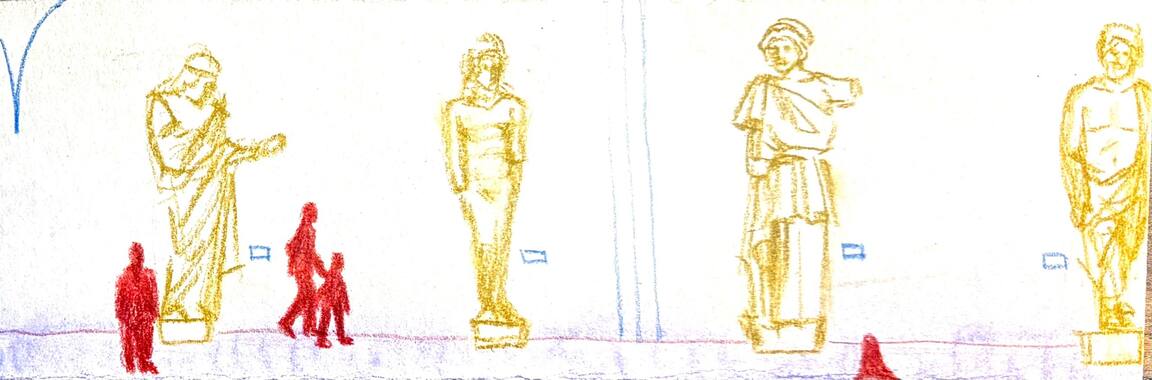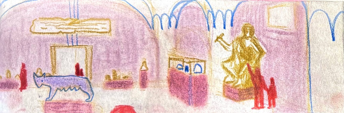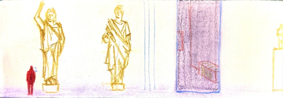 В этом модуле я работаю над зином и моя главная задача зафиксировать пространство в разном масштабе, плоскости, перспективе. Итоговым проектом стал зин, главная задача которого — пространство. За основу я взяла Пушкинский музей со своей потрясающей архитектурой и мистичесткими артефактами и скульптурами.