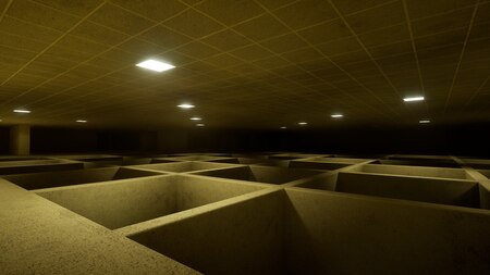 Помещения же с системой колонн вводят зрителя в ступор. В отличие от коридоров, имеющих четкие повороты и разделенность, в локациях с колоннами лиминальность проявляется в пограничном состоянии зрителя, за счет отсутствия у помещения замкнутости.