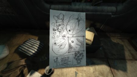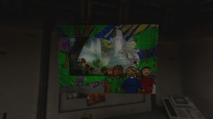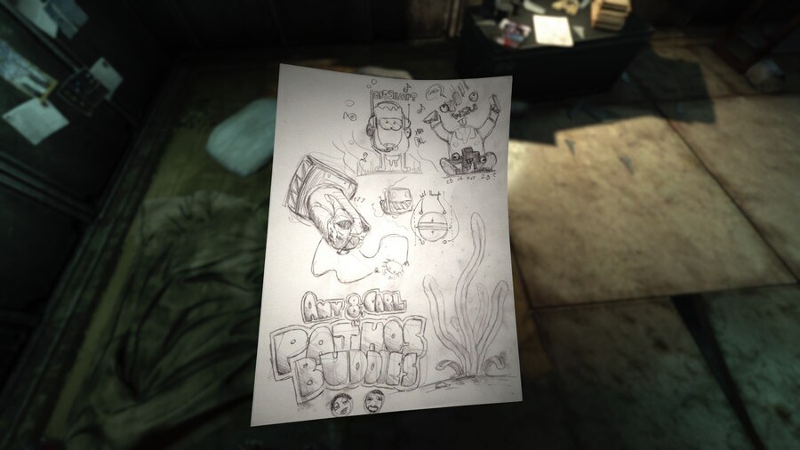 Важными деталями лиминальных постапокалиптических пространств служат фоновые предметы, усиливающие эффект заброшенности. В «SOMA», важной составляющей повествования через окружение выступают фотографии, рисунки, стикеры с надписями и даже мусор. Такие детали в пустом пространстве показывают, что раньше здесь кипела жизнь.