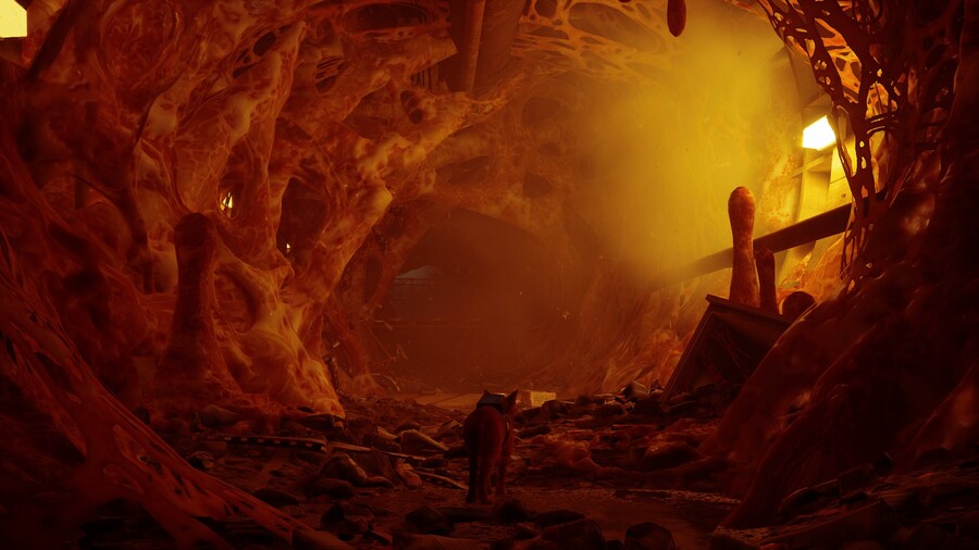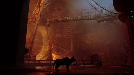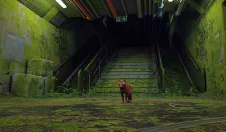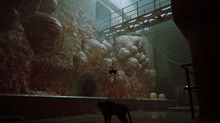 В «Stray» существа, захватившие нижний город, обволакивают пространства собой. Лиминальность в таком пространстве отражается в нестабильности окружения: не понятно, что ожидать от наблюдающих глаз, в какой момент существа начнут нападать. Данная локация также является переходом между двумя мирами — привычным миром персонажа, поверхностью, и непривычным миром — подземным городом роботов.