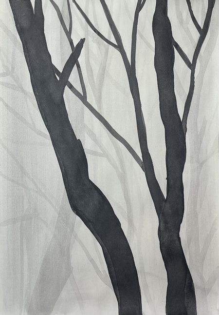 В этой серии работ я исследую, как природные линии и ритмы переходят от реального к абстрактному. Первые развороты передают наблюдения за пейзажами, затем формы постепенно теряют буквальность и превращаются в самостоятельные композиции — ветви, текстуры, ритмы. К финалу реальные образы возвращаются, но уже упрощённые, как отражение пройденного пути.