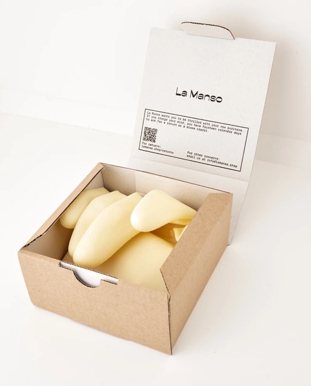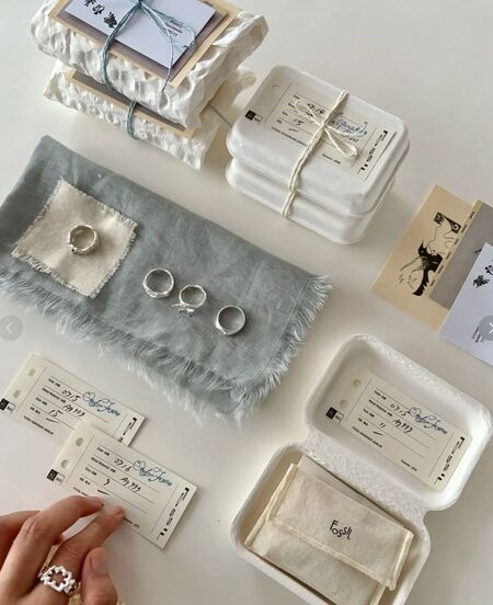 У La Manso упаковка стала частью самой идеи бренда: кольца приходят закреплёнными на латексной перчатке, на которой напечатан слоган «we cover your hand…» — «мы покрываем твою руку…». Это решение создаёт мгновенный эффект неожиданности: украшение представлено не в футляре, а прямо на «руке», превращая упаковку в элемент образа.
